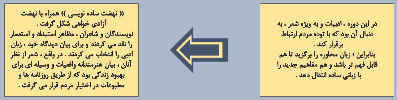 شاعران خود را وقف مردم کردند و به محتوا ، بیشتر از صور خیال و جنبه های شاعرانه توجه داشتند .