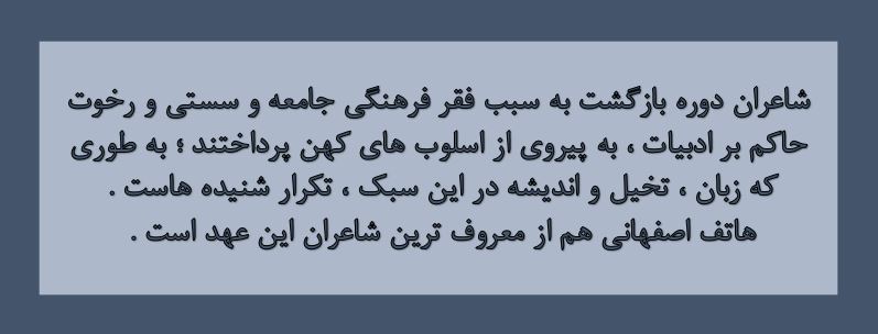 در نتیجه ؛ شعر را به دوران گذشته بازگرداندند و موجب پیدایش (( سبک بازگشت )) شدند .