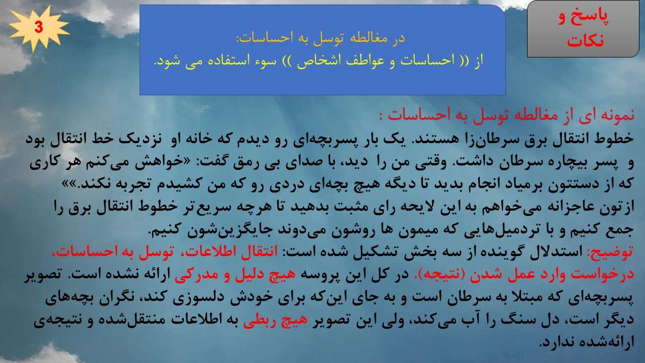 ب) تطمیع و تهدید از زیر شاخه های مغالطه توسل به احساسات هستند.