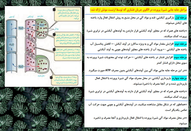 نمونه ای از صفحات جزوه درباره ی جابه جایی شیره ی پرورده : ( صفحه 9 جزوه )