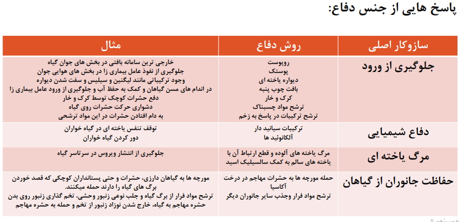 جمع بندی سازوکارهای دفاعی گیاه با کمک جدول : ( صفحه ی 15 جزوه )
