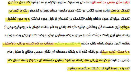 من نگين كياني هستم دانشجوي پزشكي علوم پزشكي مشهد، در جزوه نکات متن و تصاویر فصل هشتم یازدهم ( تولیدمثل نهاندانگان ) رو براي شما بررسي كردم و تعدادي تست درپايان مطلب قرار دادم تا با كاكردن اونها بتونين ميزان يادگيري خودتون رو از درسنامه بسنجين .