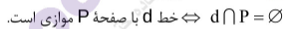 2) هر خطی که یکی از آن ها را قطع کند دیگری را نیز قطع میکند و فصل مشترک صفحات با یکدیگر موازی هستند .