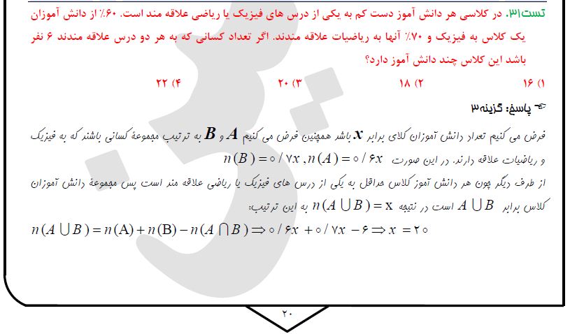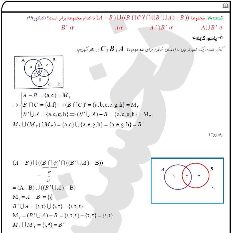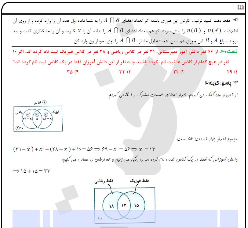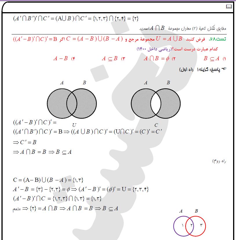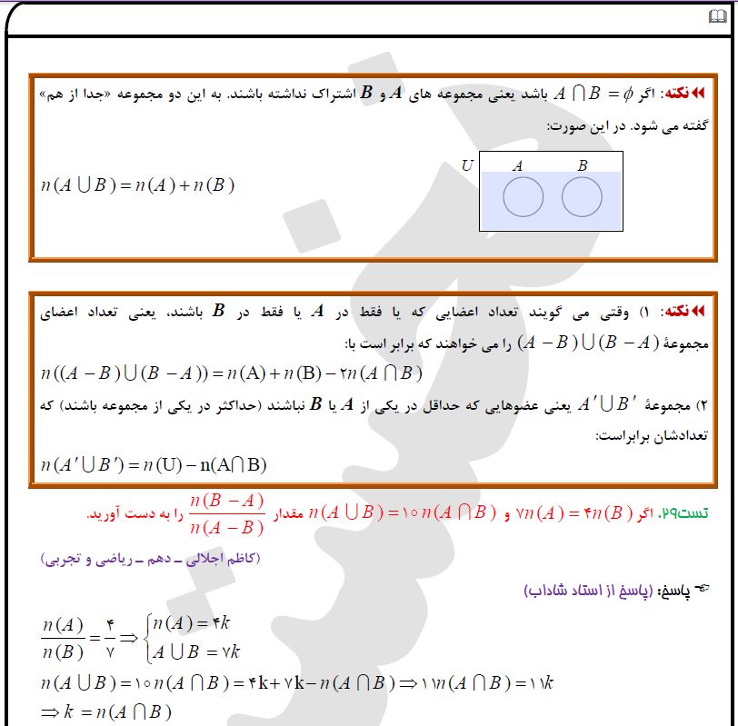 دانش آموزان عزیز سلام در مطلب زیر 8 تست از بخش مجموعه ها فصل اول کتاب ریاضی دهم به همراه پاسخ در اختیار شما قرار گرفته است .
