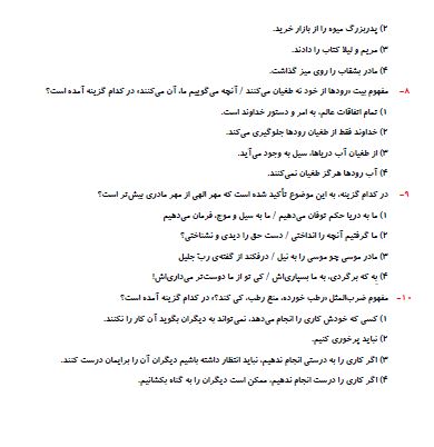 در ادامه برای شما 10 سوال فارسی چهارم برای آمادگی آزمون 9 مهر به همراه پاسخ تشریحی آورده شده است. موفق باشید.