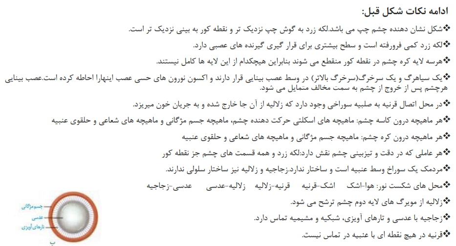 شناسنامه ی فصل :تصاویر این فصل به خصوص بخش گوش و چشم آن مهم است و گفتار آخر و جانوری آن نیز دارای مطالب مهمی است که بسیار در تست های ترکیبی استفاده می شود .