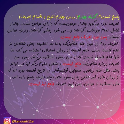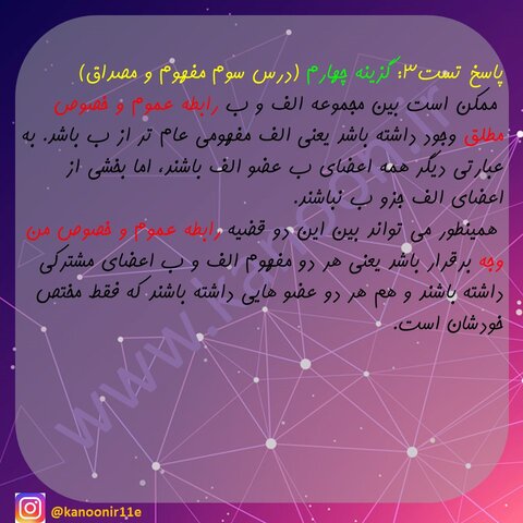 حواستون باشه که اول خودتون به تست ها پاسخ بدید ، بعد پاسخنامه رو با دقت بخونید. بخشی از نکات مهم مباحث کتاب هم در پاسخ نامه آورده شده.
