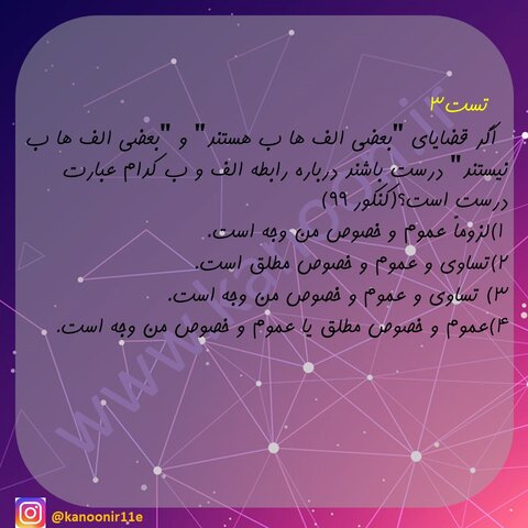 امروز میخوایم با هم 4 تست کنکور منطق (قسمت اول) رو برای جمع بندی کل کتاب حل کنیم.