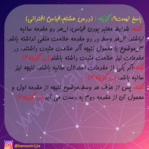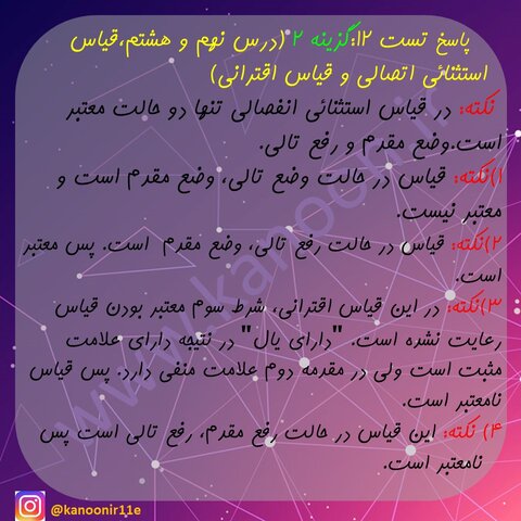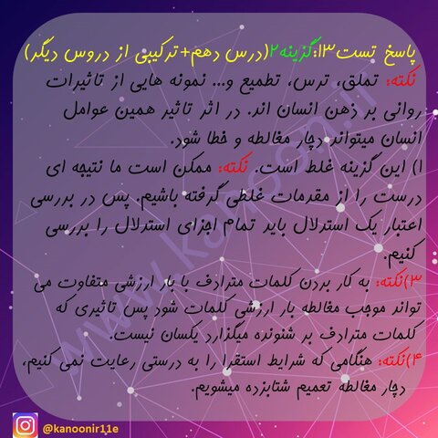 حواستون باشه که اول خودتون به تست ها پاسخ بدید ، بعد پاسخنامه رو با دقت بخونید. بخشی از نکات مهم مباحث کتاب هم در پاسخ نامه آورده شده.