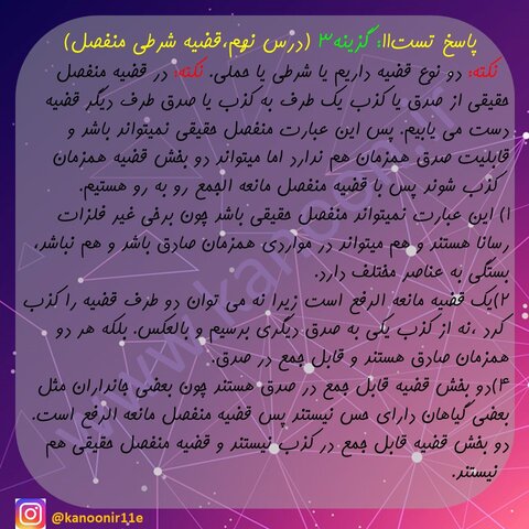 *در قضیه منفصل حقیقی از صدق یا کذب یک طرف به کذب یا صدق طرف دیگر قضیه دست می یابیم.....