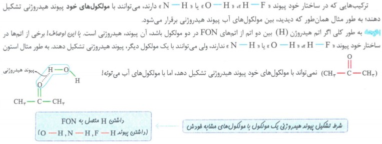یکی از انواع نیرو های بین مولکولی است که بین مولکول های دارای اتم هیدروژن متصل به یکی از اتم های F, O, N ایجاد می شود.