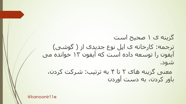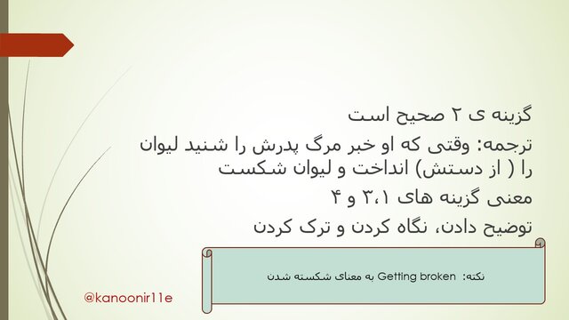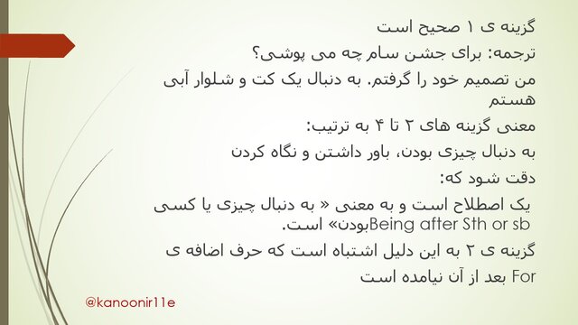 حالا بریم سراغ پاسخ تشریحی تست ها به همراه نکات مهم گرامر کتاب:
