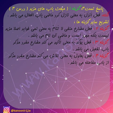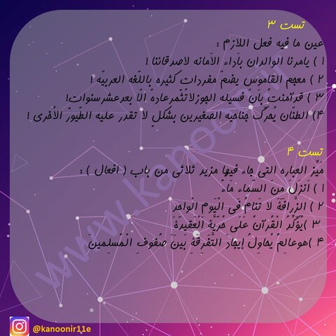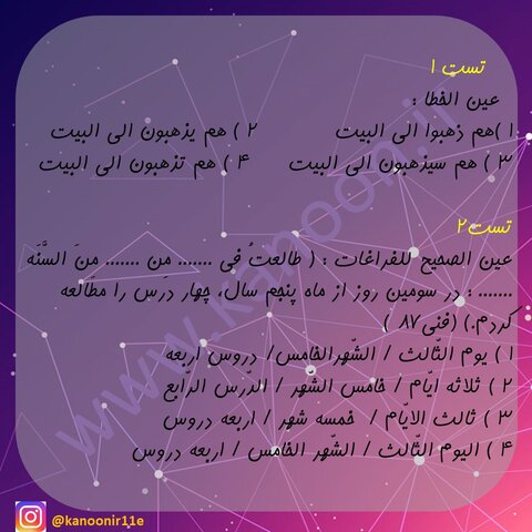 امروز میخوایم با هم 4 تست قواعد و ترجمه (عربی دهم) (قسمت اول) رو برای جمع بندی کل کتاب حل کنیم.