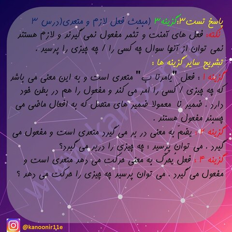 حواستون باشه که اول خودتون به تست ها پاسخ بدید ، بعد پاسخنامه رو با دقت بخونید. بخشی از نکات مهم کتاب هم در پاسخ نامه آورده شده.
