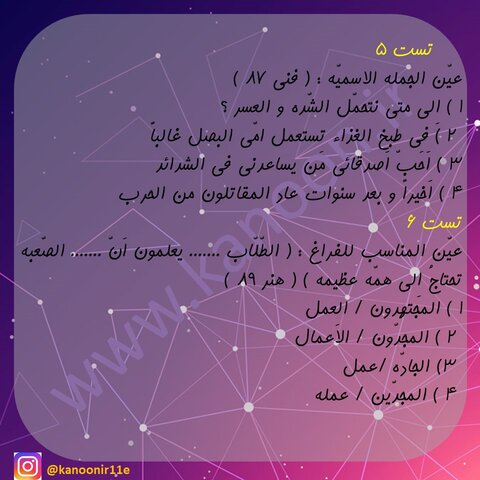 هم چنین برای مشاهده ی قسمت اول این مجموعه تست به لینک زیر مراجعه کنید.
