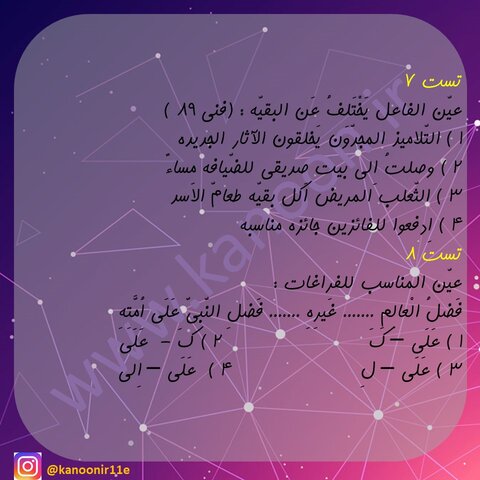 امروز میخوایم با هم 4 تست قواعد و ترجمه (عربی دهم) (قسمت دوم) رو برای جمع بندی کل کتاب حل کنیم.