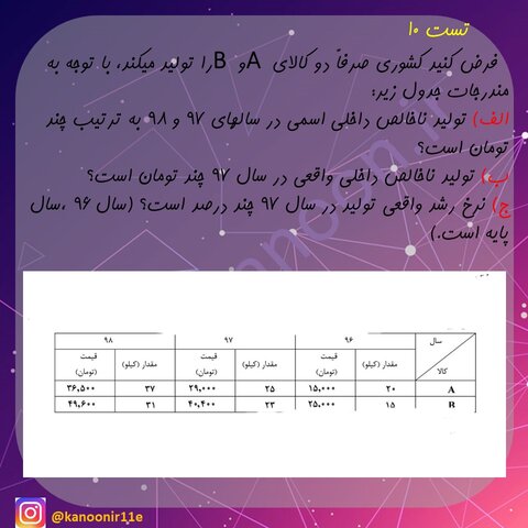 امروز میخوایم با هم 5 تست مسائل اقتصاد دهم (قسمت دوم) رو برای جمع بندی کل کتاب حل کنیم.