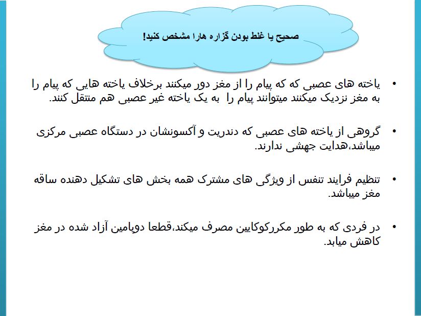 تنظیم عصبی_برسی چند گزاره از فصل یک_کتاب 5000 گزاره زیست