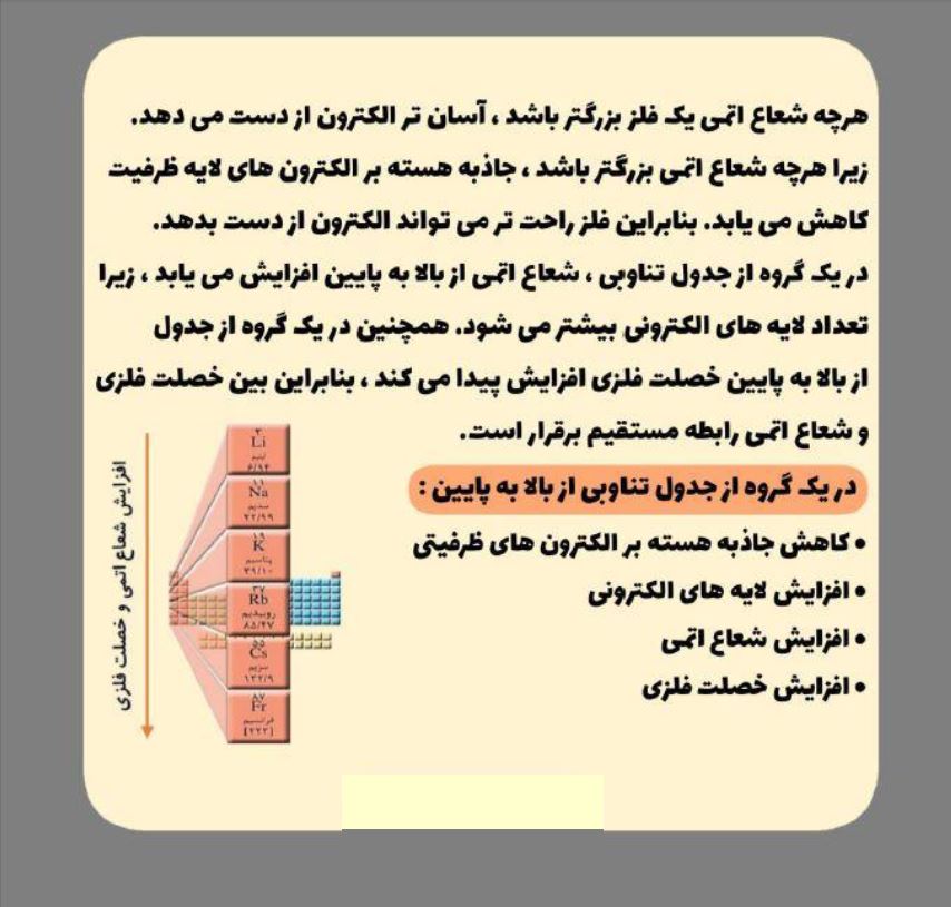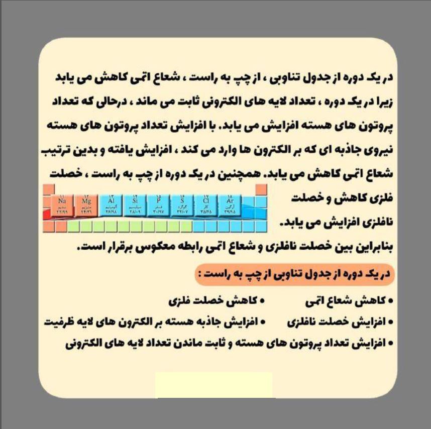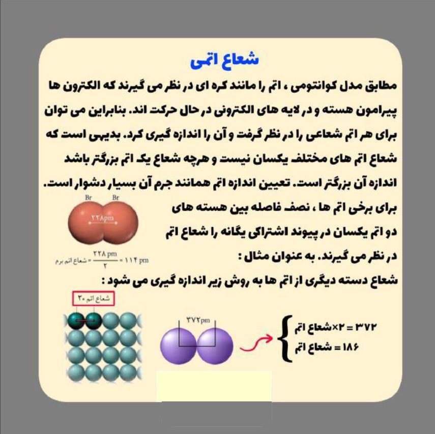 این مطلب در مورد شعاع اتمی فصل اول شیمی یازدهم است ونکات آنرا بیان میکند