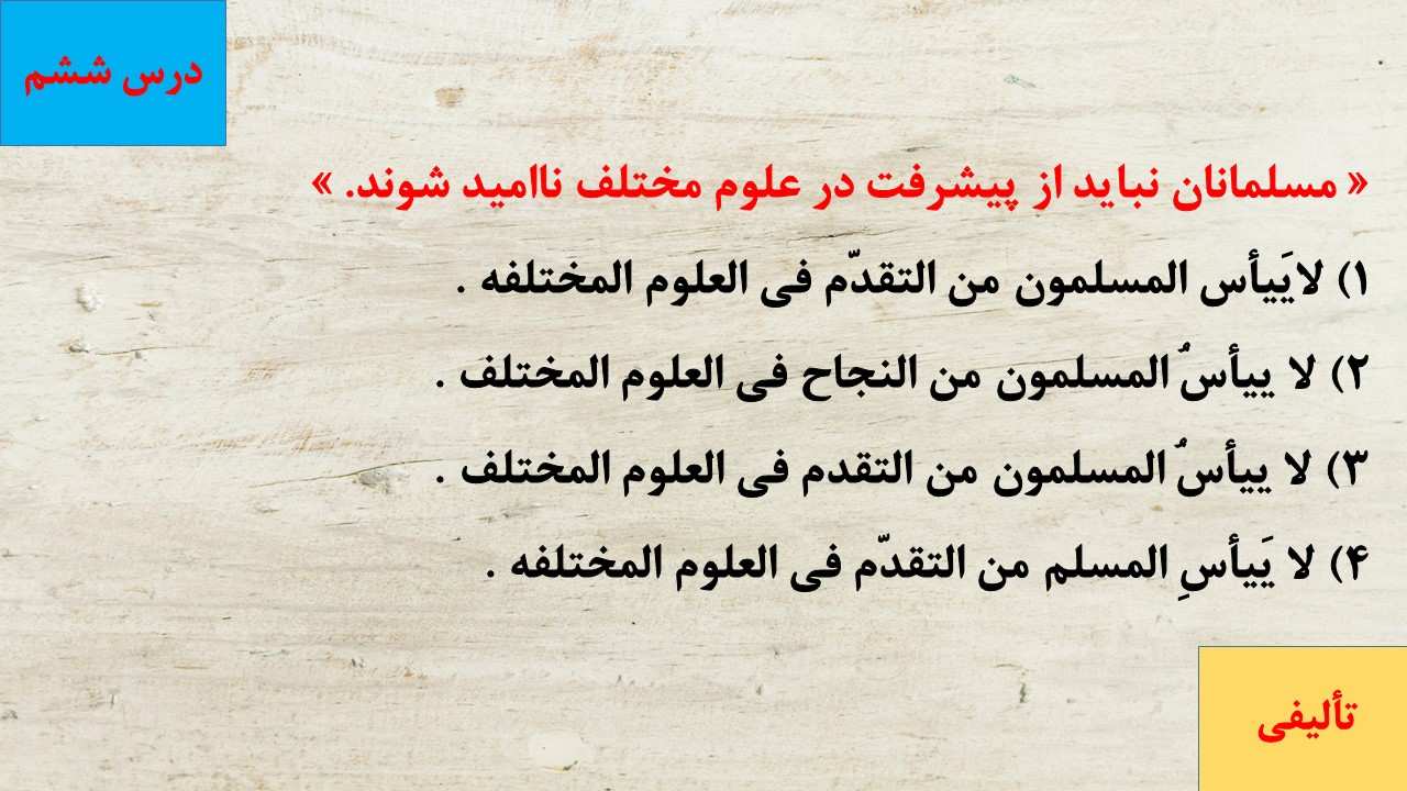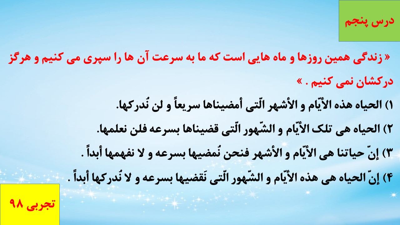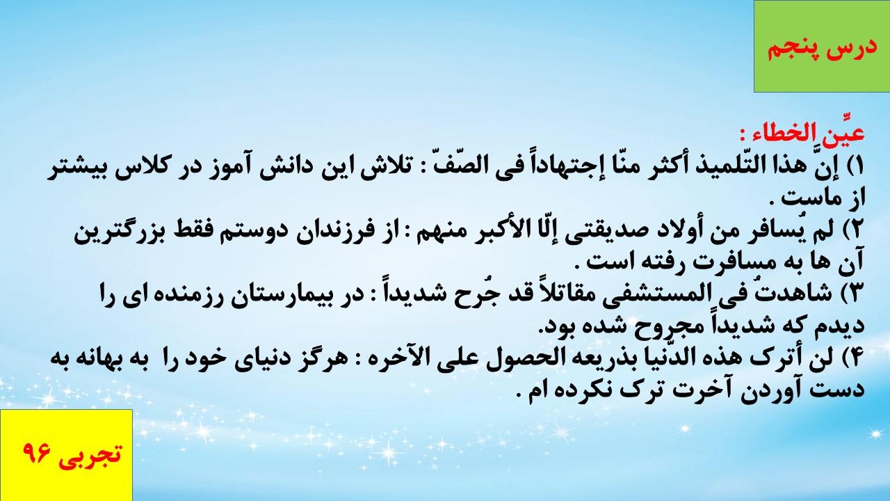 در ضمن شما می تونید که همین الان خودتون را با مجموعه اول جمع بندی عربی امتحان کنید .
