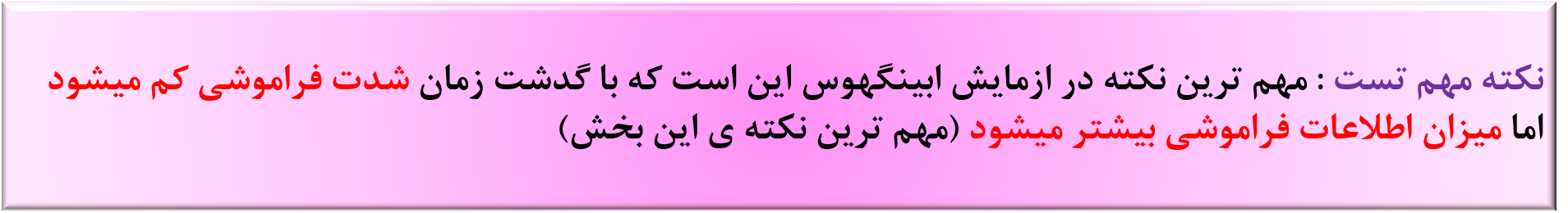 🌞کدام مورد درباره ازمایش ابینگهوس در رابطه ی گذشت زمان و فراموشی درست است؟(سراسری 99)