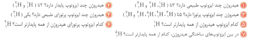 نکته: ایزوتوپ ها خواص شیمیایی یکسانی دارند ولی برخی خواص فیزیکی وابسته به جرم آن ها مانند چگالی متفاوت است.