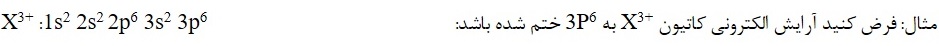 برای نوشتن آرایش یون منفی، ابتدا آرایش الکترونی اتم مورد نظر را نوشته و سپس به تعداد بار یون به آخرین زیر لایه موجود الکترون اضافه کنید.