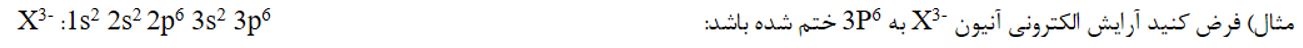 اگر آرایش الکترونی آنیونی داده شود و آرایش الکترونی اتم خنثی را بخواهید، کافی است به تعداد بار آنیون، از آخرین زیر لایه موجود در آنیون الکترون کم کنید.
