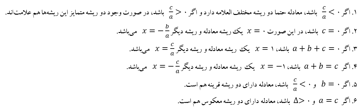 1. اگر ∆<0 باشد، آنگاه معادله ریشه حقیقی ندارد.
