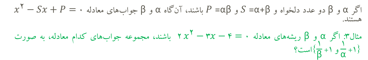 روابط بین ضرایب و ریشههای معادله درجه دوم