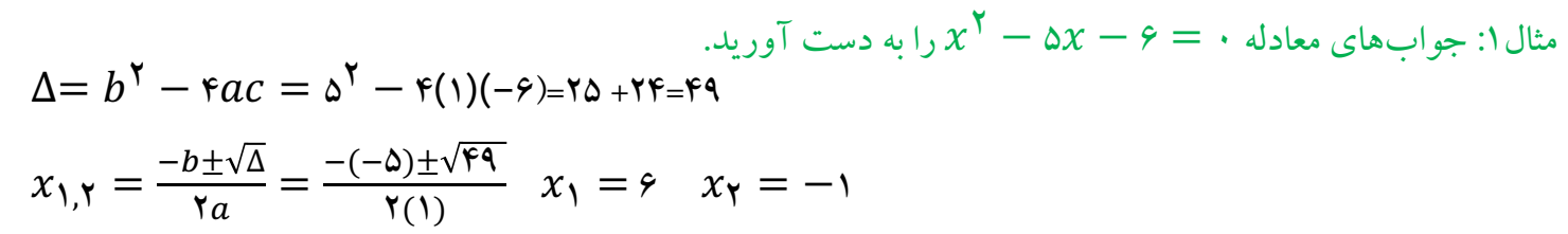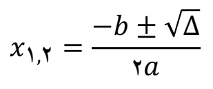 ریشه های معادله درجه دوم نیز از طریق رابطه زیر به دست میآید: