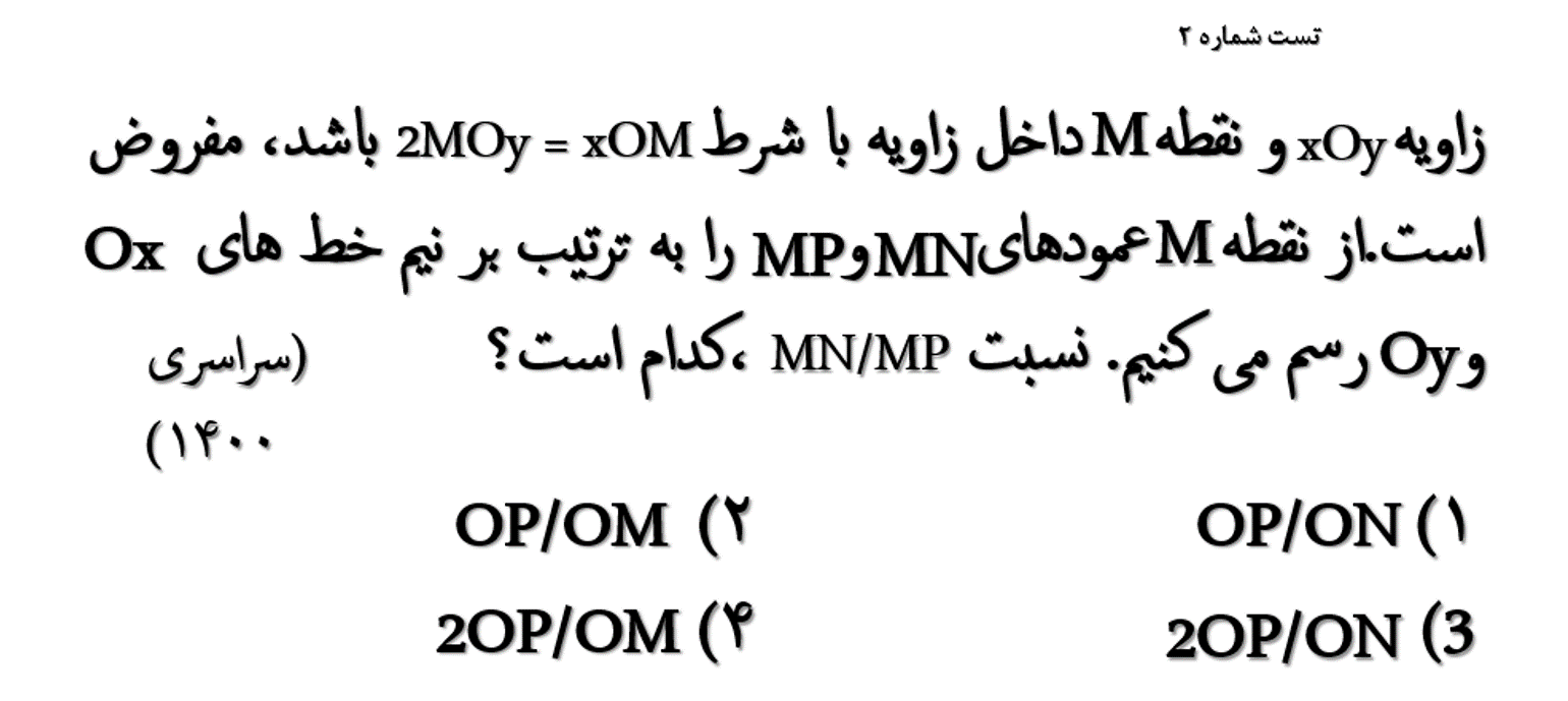 پیشنهاد اینجانب این است قبل از شروع تست ها به درسنامه های هندسه دهم یک نگاهی بیندازید