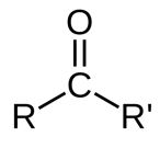 این گروه عاملی مختص آلدهید ها و کتون هاست. در آلدهید ها این گروه عاملی در ابتدای زنجیره کربنی قرار می گیرد و از یک سمت حتما به H متصل است. مانند بنزآلدهید. ولی در کتون ها این گروه عاملی از هر دو سمت به کربن متصل است.