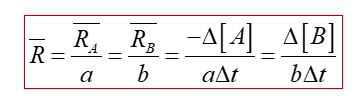 سرعت واکنش: اگر سرعت تولید یا مصرف هر یک از مواد شرکت کننده در واکنش را بر ضریب استوکیومتری آن ماده تقسیم کنیم، سرعت متوسط واکنش حاصل می شود.