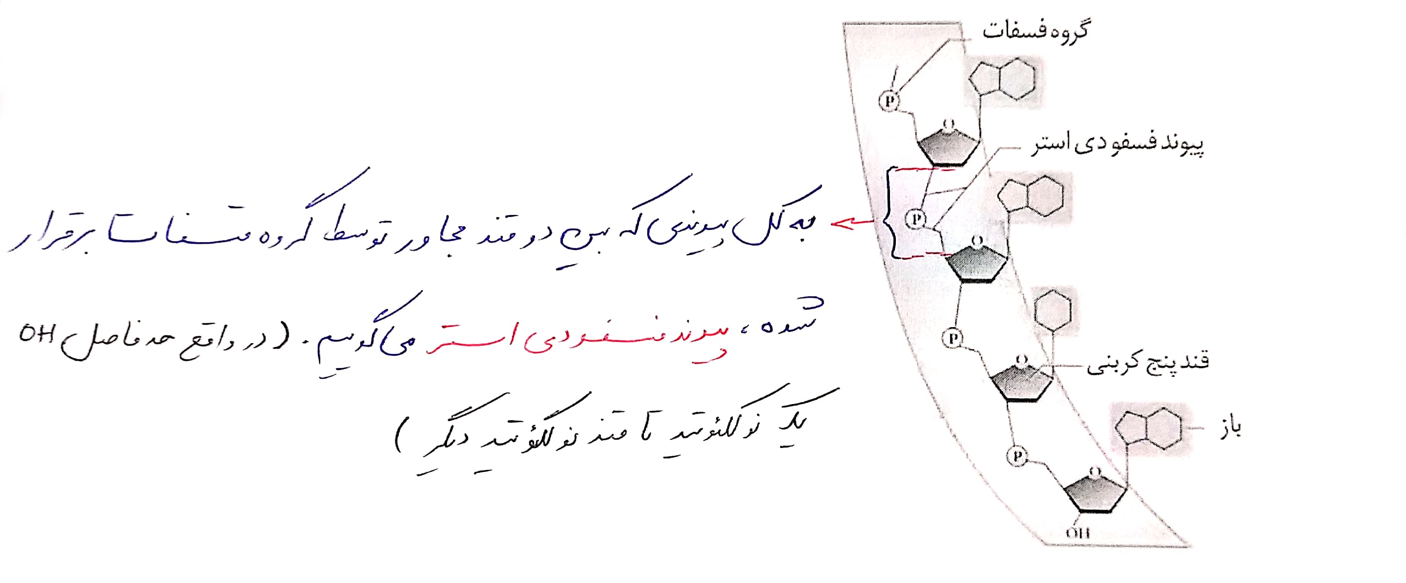 - دقت کنید که هر پیوند قند فسفات در پلی نوکلئوتید ها، جزء پیوند فسفو دی استر نیست، ممکن است در انتهای رشته پلی نوکلئوتیدی باشد و جزء پیوند فسفو دی استر نباشد.