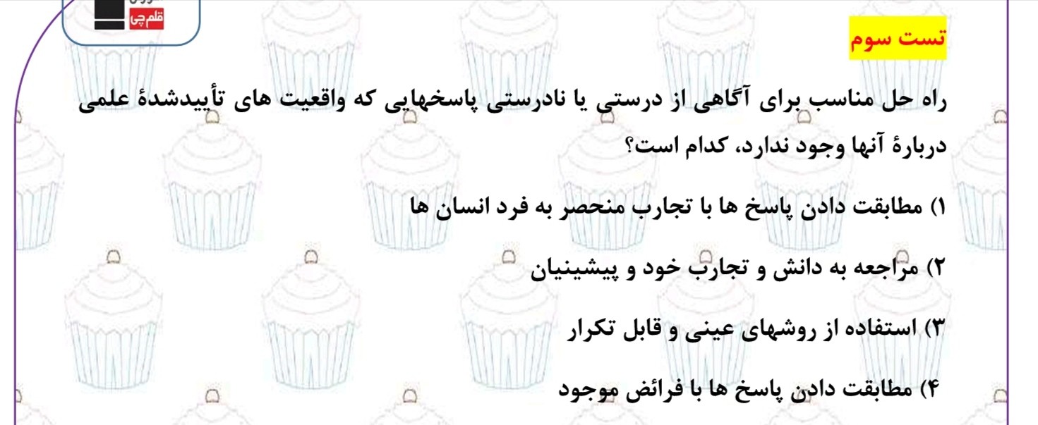 اگه نتونستید به تست ها پاسخ درست بدید ، پاسخنامه تشریحی رو به دقت بخونید و اشتباهاتتون رو برای خودتون یادداشت کنید.