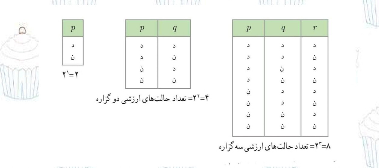 حالا می خواهیم ببینیم با توجه به تعداد گزاره هایی که با هم ترکیب می شوند وضعیت ارزش گذاری صدق و کذب آنها چگونه است:
