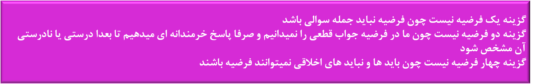 🔴نکته : بسیاری از دانشمندان تجربی دچار مشکل شده اند و دیگر منابع کسب شناخت را قبول ندارند در صورتی که موضع آنها به جای (نیست) باید (نمیدانم) باشد .