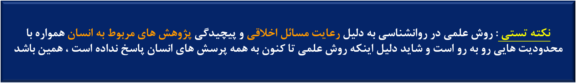 🔵روش علمی : یکی از روش های تجربی ، روش موردنظر روانشناسان و عینی و قابل تکرار است .