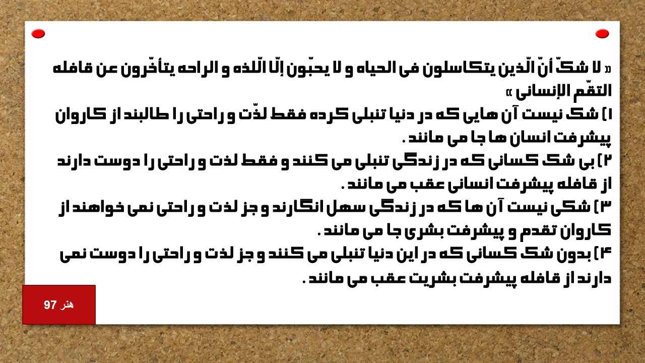 گزینه 1 : می گوید که ، با صرفا حرف زدن نمی توان به جایی رسید بلکه باید عمل کردن باشد .