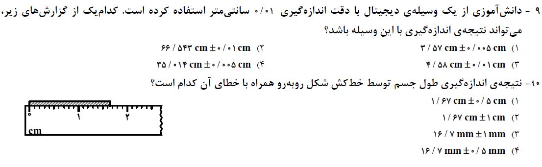 10 سوال فیزیک دهم که در ادامه برای شما قرار دادیم، جمع بندی مباحث آزمون 22 مهر بوده و برای آمادگی بیشتر شما در این آزمون توسط فاطمه احدزاده رتبه 373 رشته ریاضی سال 95 انتخاب و برای شما قرار داده شده است. بعد از مطالعه ی کتاب درسی و درسنامه های آمادگی آزمون 23 مهر، توصیه میکنم حتما این سوالات را حل کرده و جواب های خود را با پاسخنامه بررسی کنید.