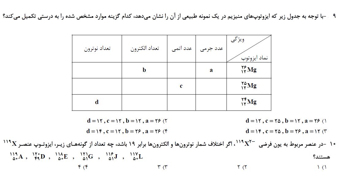 10 سوال شیمی دهم که در ادامه برای شما قرار دادیم، جمع بندی مباحث آزمون 22 مهر بوده و برای آمادگی بیشتر شما در این آزمون توسط فاطمه احدزاده رتبه 373 رشته ریاضی سال 95 انتخاب و برای شما قرار داده شده است. بعد از مطالعه ی کتاب درسی و درسنامه های آمادگی آزمون 23 مهر، توصیه میکنم حتما این سوالات را حل کرده و جواب های خود را با پاسخنامه بررسی کنید.