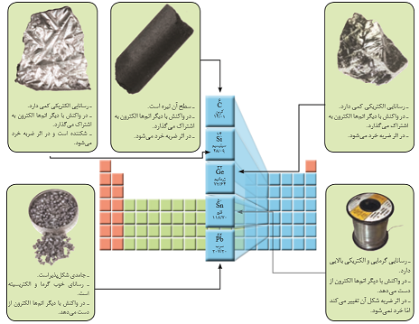 * خواص فیزیکی آن ها بیش تر به فلزها شبیه است در حالی که رفتار شیمیایی آن ها همانند نافلزهاست.