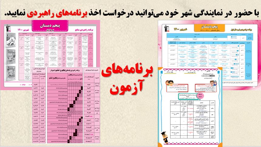 آشنایی با انواع برنامههای آزمون برای کلیه پایهها را مشاهده نمایید.