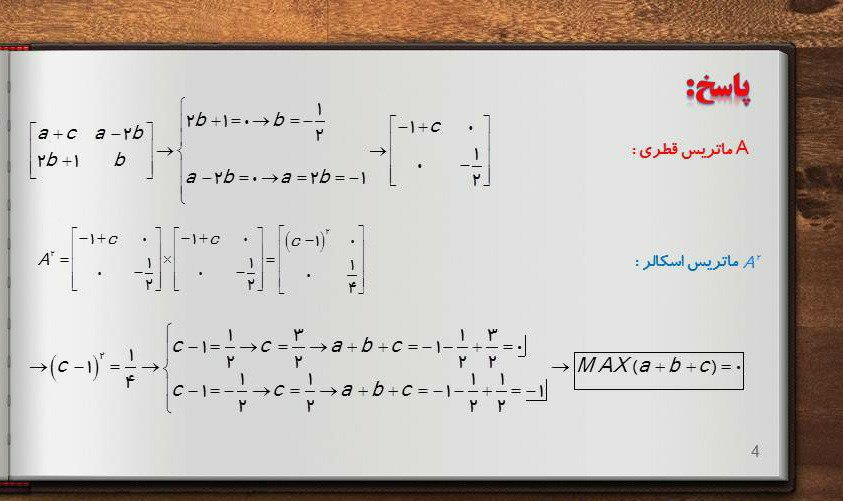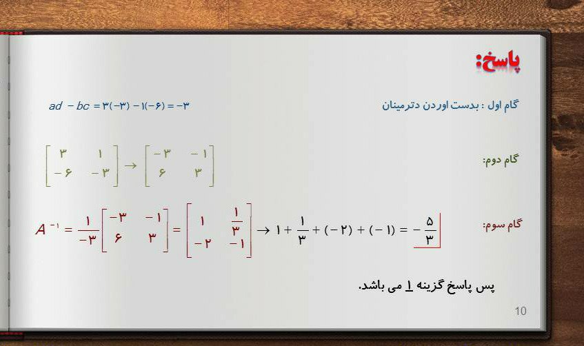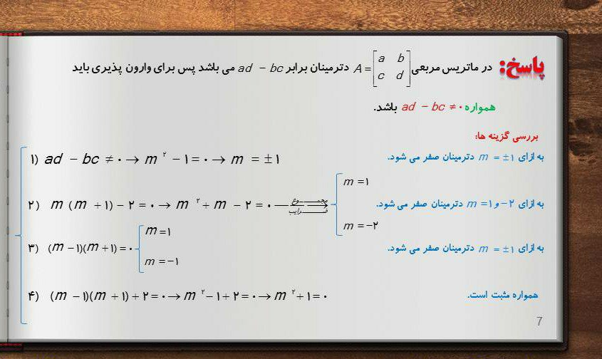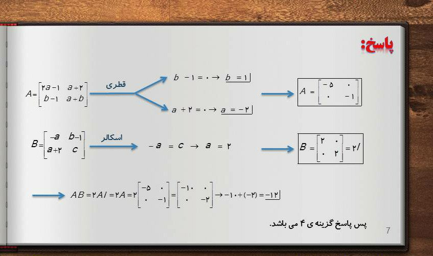 پاسخ کامنت طاها اکبری الوانق، ریاضى نظام جدید - تبریز - میانگین تراز 7346 : ماتریس دو در دو_تاریخ ثبت:14000614