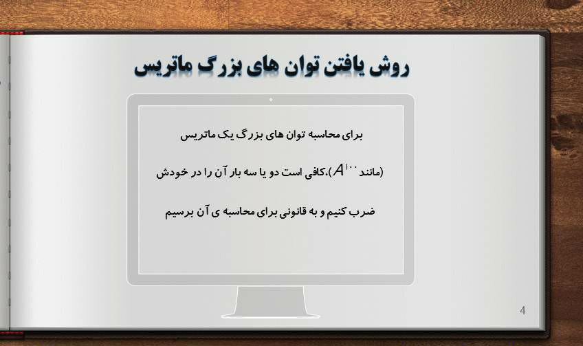 پاسخ کامنت کاربر : هر وقت توانی از ماتریس مثلا ان، ماتریس صفر شود، آن ماتریس پوچ توان از مرتبه ان است. یعنی توانهای بعد از آن هم صفر میشود._تاریخ ثبت_تاریخ ثبت:14000614