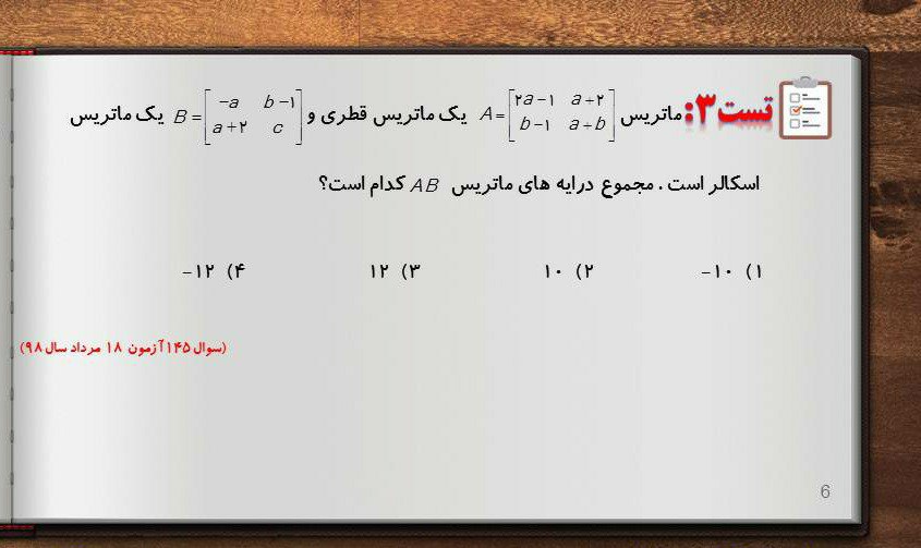 در این قسمت سعی داریم با خلاصه در کوتاه و ذکر نکات و حل تست ماتریس مروری خوبی بر این مبحث مهم داشته باشیم...