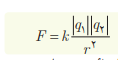 که در آن r فاصله بین دو بار است و k یک ثابت است که برابر است با :