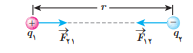 در این فرمول ها d فاصله بین دو بار است و q2 بار بزرگتر از نظر اندازه و q1 بار کوچکتر است .