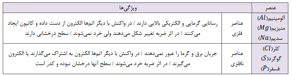 ویژگی های زیر از عناصر تناوب سوم از جدول دوره ای را به خاطر داشته باشید: